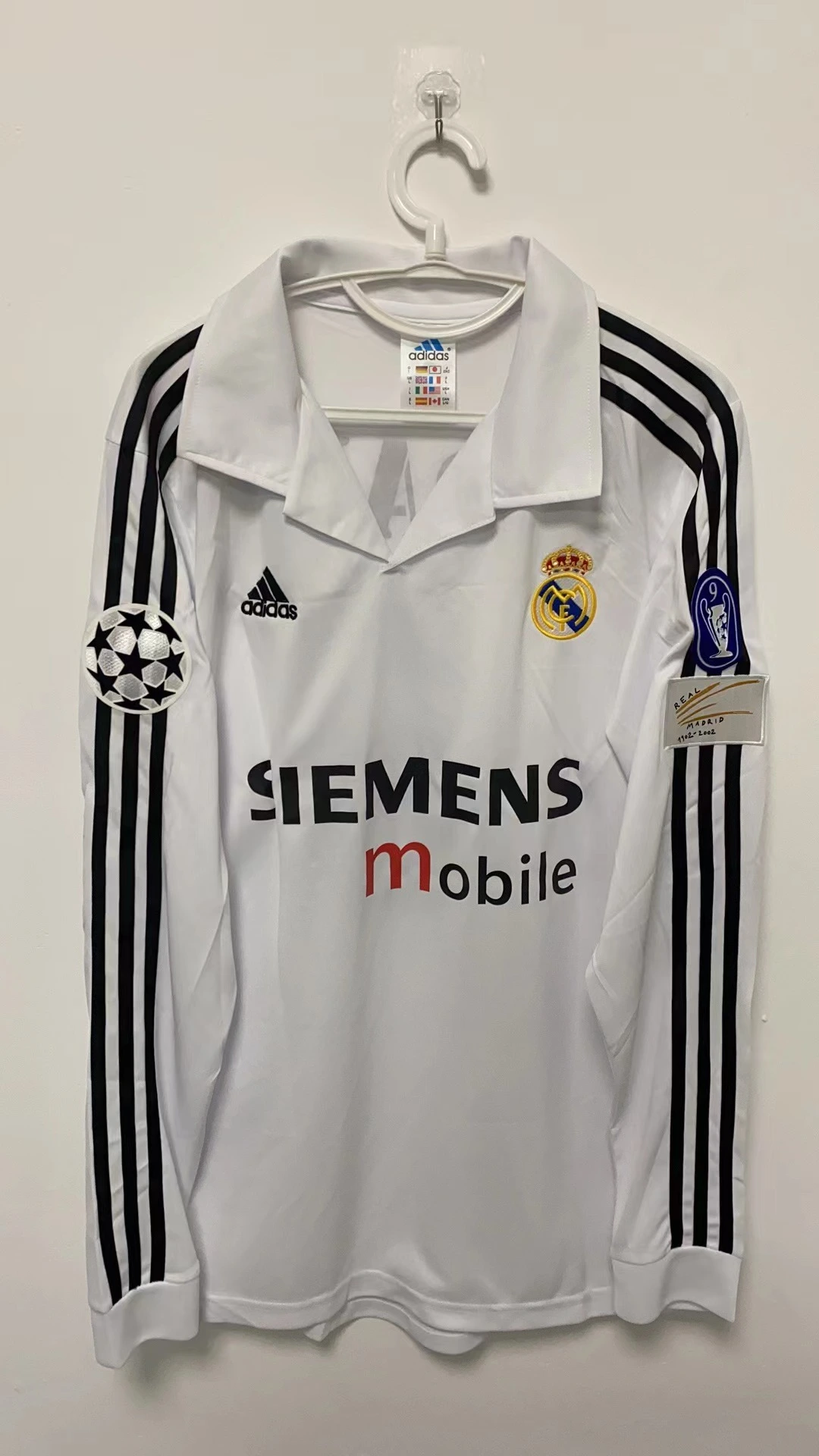 Relive Zinedine Zidane’s iconic 2002/2003 season with this Real Madrid Home Retro Jersey — a timeless piece for fans and collectors. Designed in the classic all-white style, this long sleeve shirt pays tribute to one of the greatest midfielders in football history.